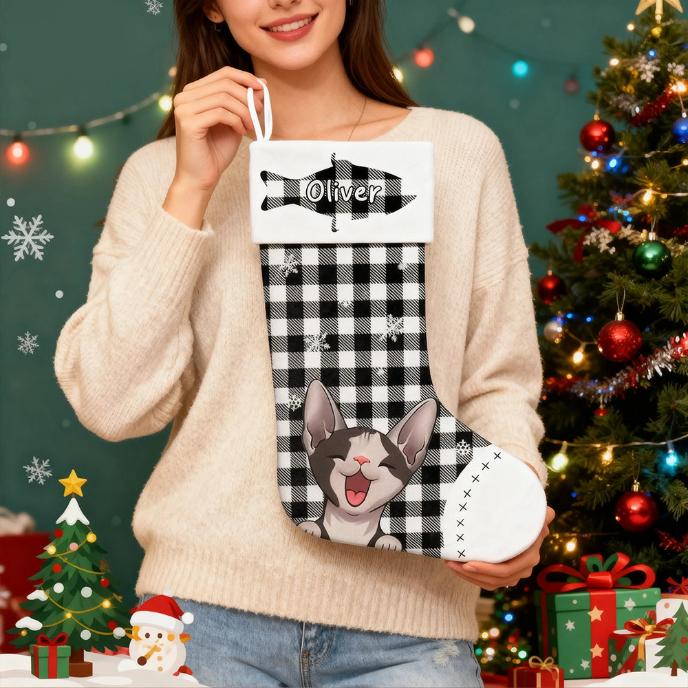 Custom Pet Christmas Stockings with Name – Plaid Cat Gifts