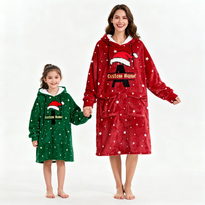 Get cozy this holiday season with our Christmas Letter Wearable Blanket Hoodie! Pick any letter from A–Z (each with a festive Santa hat) and add your own text — perfect for names, funny holiday phrases, or matching family designs.