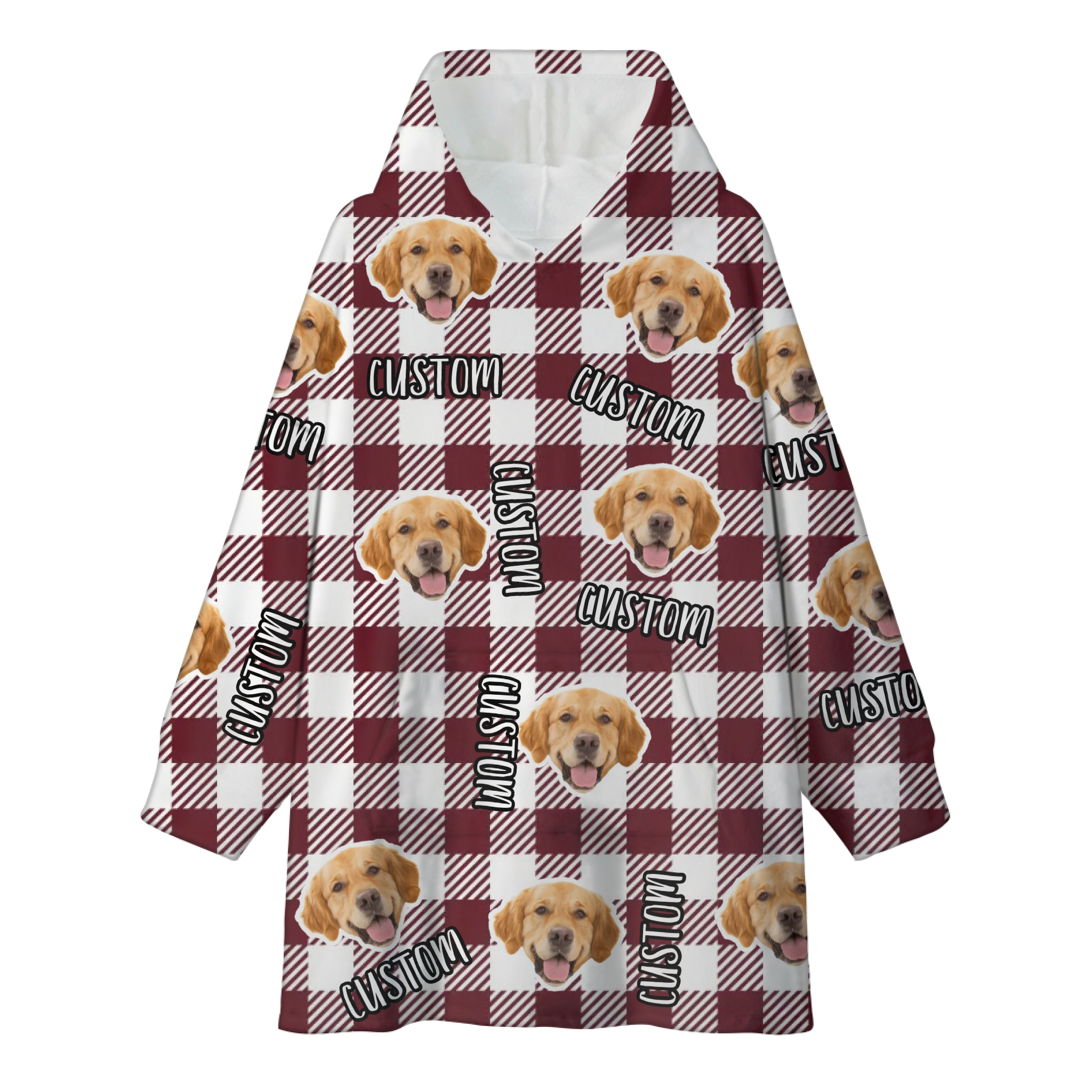 Wrap yourself in holiday cheer with our Custom Christmas Plaid Photo Hoodie – the perfect cozy gift for pet lovers, friends, and family! This soft, oversized hoodie features a festive red-and-white plaid design, customizable with your own uploaded photo (your pet, loved one, or even yourself!) and personalized name.