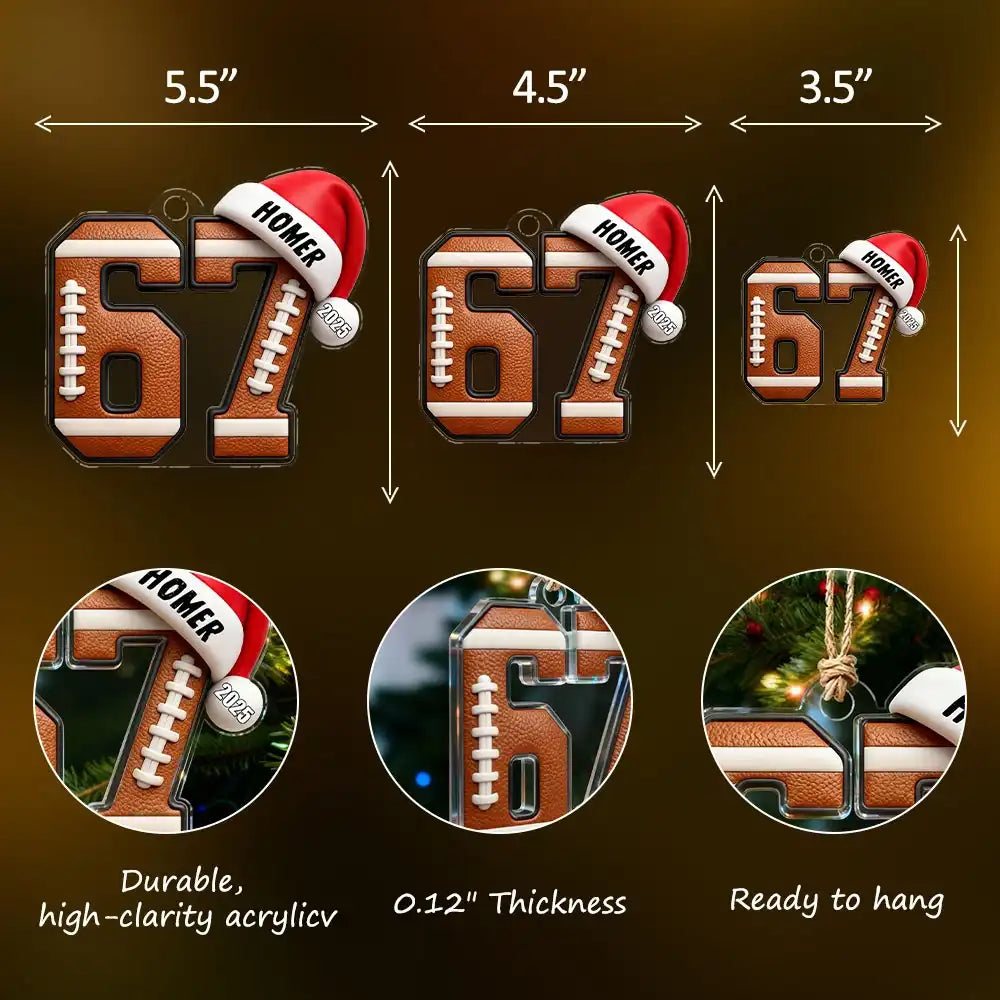 Custom 6 7 Football Acrylic Ornament with Personalized Name and Year