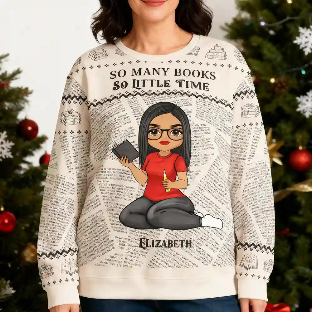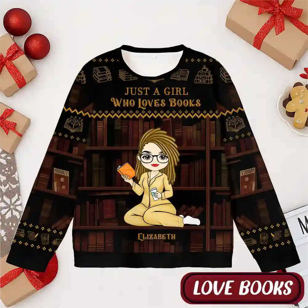 Customize it with your name and choose your favorite character style to create a sweater that feels uniquely you. Whether you’re curling up with a good book, heading to a holiday book club, or searching for the perfect gift for a fellow reader, this sweater combines comfort, personality, and literary charm in one delightful design.