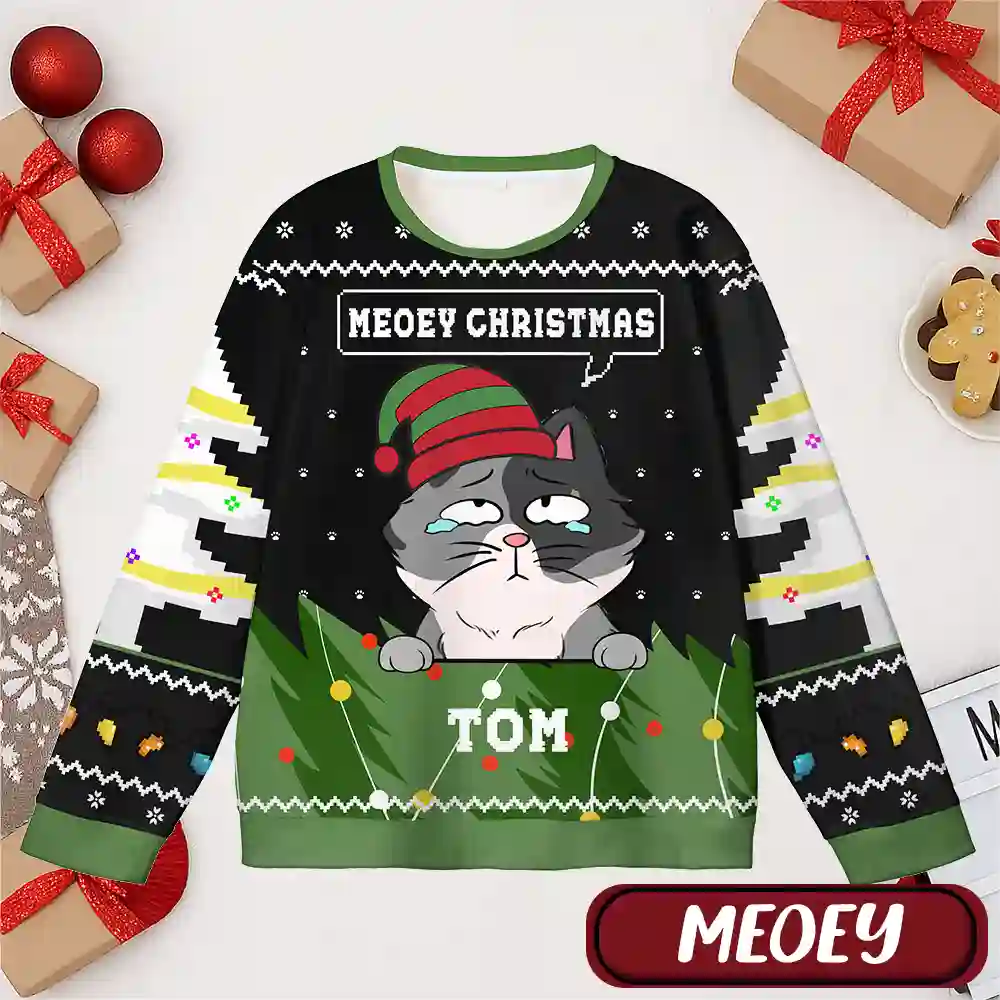 This unique Christmas sweater makes a thoughtful gift for cat moms, cat dads, and pet lovers who want to include their beloved cats in the holiday fun. Stand out at your next ugly sweater contest or surprise someone special with a personalized holiday keepsake!
