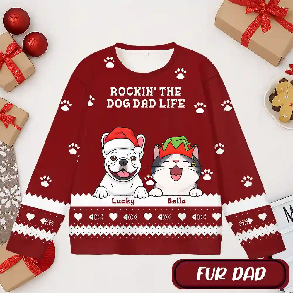 Get ready to rock your holiday style with our Custom “Rockin’ The Pet Parent Life” Ugly Christmas Sweater — the ultimate festive gift for dog and cat lovers!