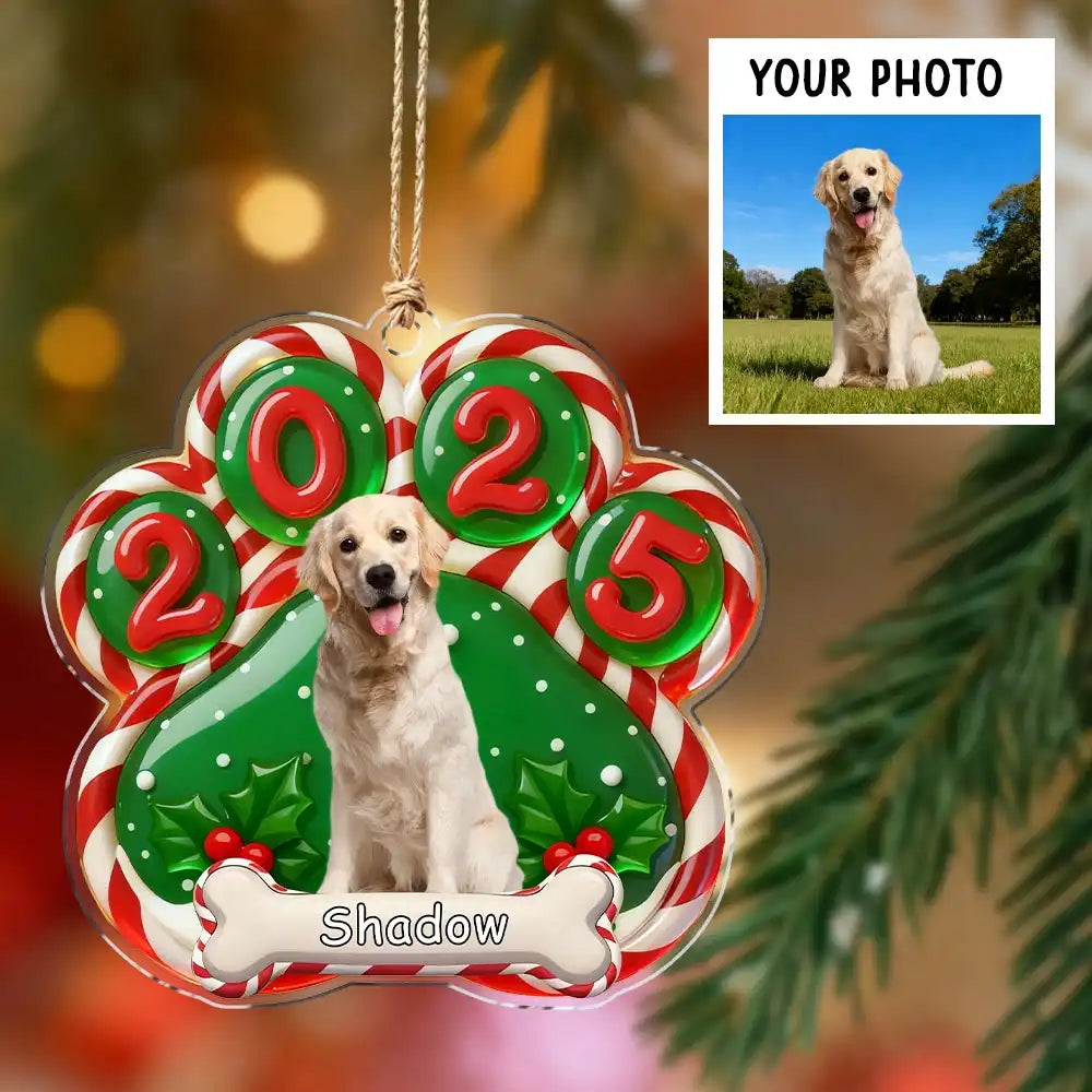 Personalized dog paw print Christmas acrylic keychain, can be customized with pet photos.