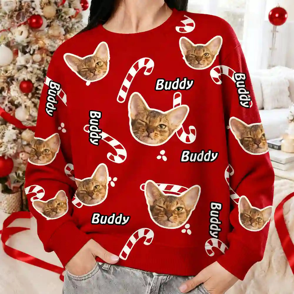 Make this holiday season extra special with our Personalized Pet Christmas Sweater! This festive ugly sweater is designed to showcase your furry friend in the most adorable way possible. Simply upload your cat’s photo, add their name, and watch it turn into a one-of-a-kind holiday masterpiece.