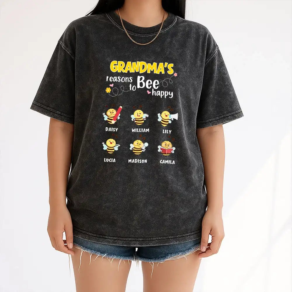 Personalized Grandma’s Reasons To Bee Happy Vintage T-Shirt – Custom Bees & Names