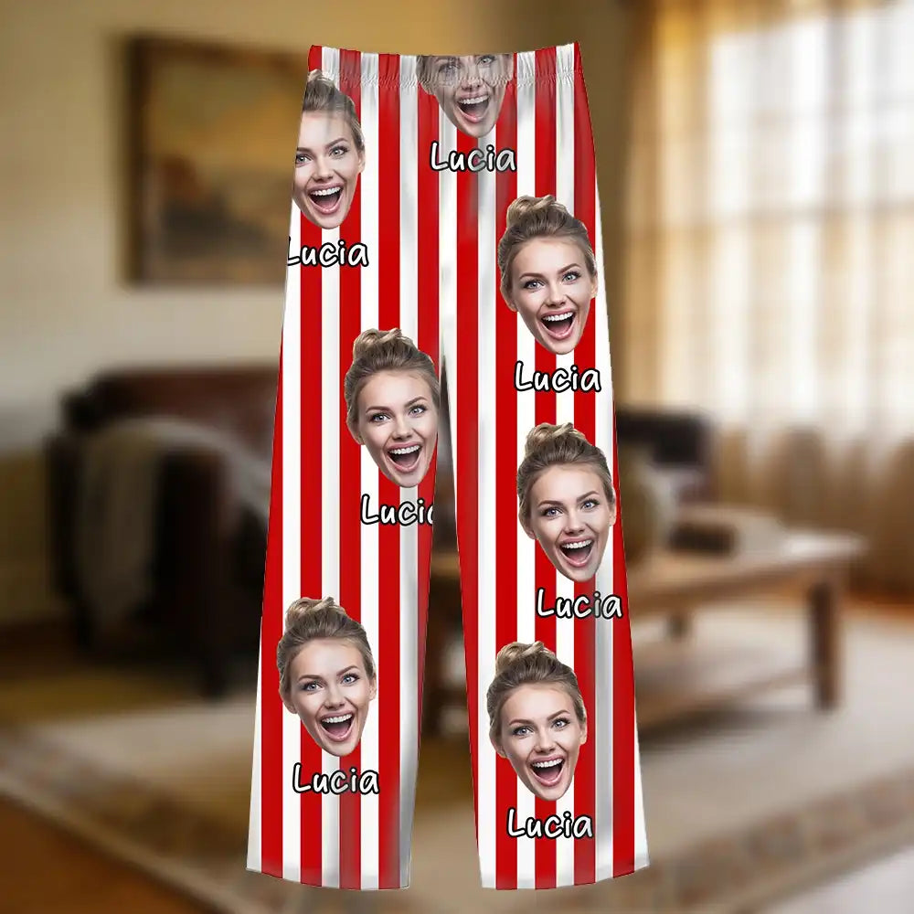 These personalized striped pajamas feature your custom face photo in a fun and eye-catching full-print design. Crafted with soft, lightweight fabric for comfortable lounging, this pajama set makes a unique and playful gift for your partner. Perfect for Valentine’s Day, anniversaries, Christmas, or matching couple moments, these customized pajamas add personality and humor to your nighttime routine. Simply upload a photo to create a fully personalized pajama set your loved one will enjoy wearing.