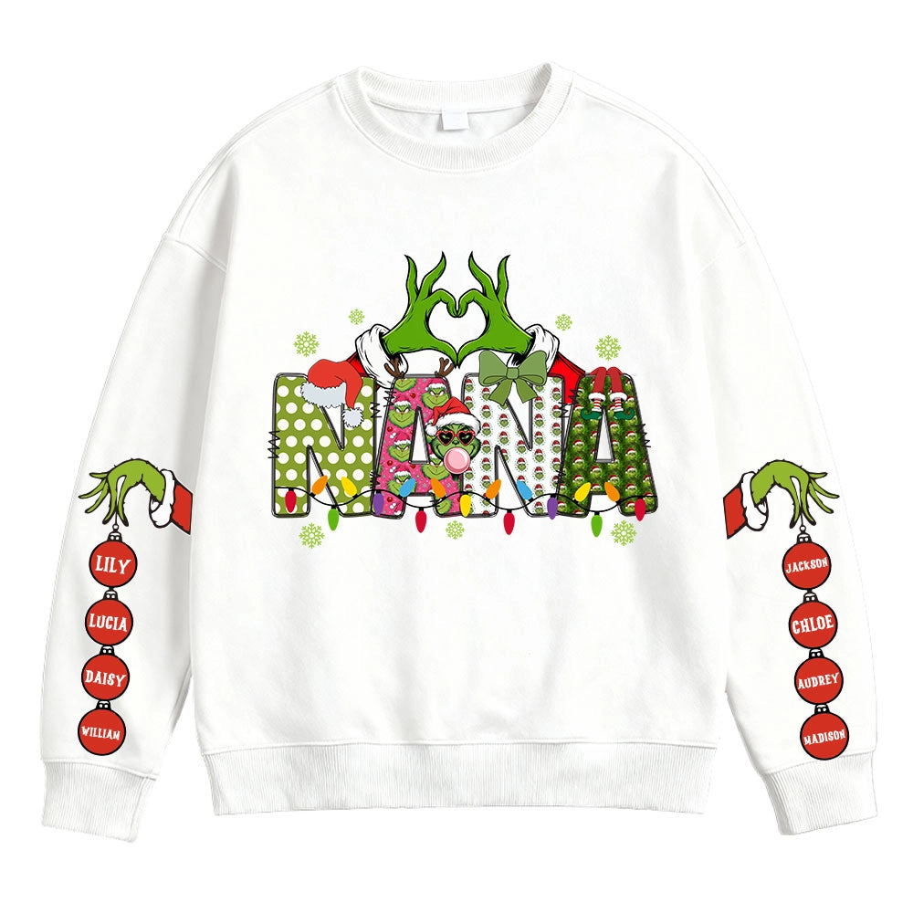 Custom Grinch Nana Christmas Sweatshirt with Grandkids' Names