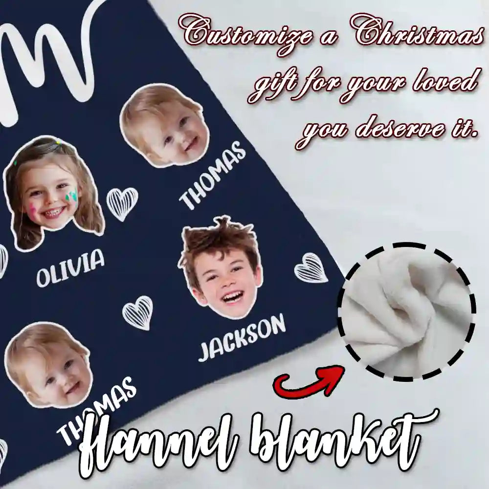 Wrap your loved ones in warmth and love with our Custom Family Faces Blanket. This cozy flannel throw is more than just a blanket—it’s a personalized keepsake that celebrates family bonds. Upload your children’s or grandchildren’s photos, add their names, and create a one-of-a-kind gift that will bring endless smiles to Mom, Grandma, or Nana.