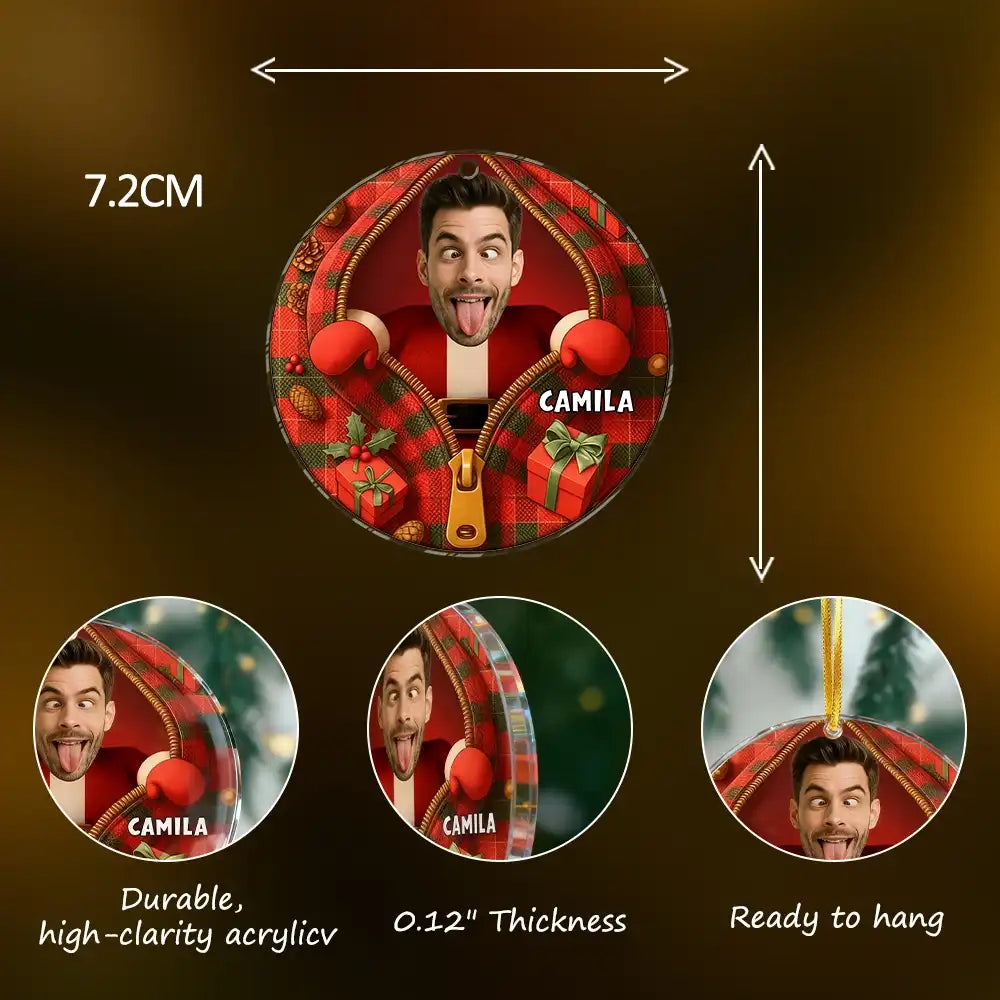 This custom acrylic ornament transforms your photo into a unique Christmas design, creating a fun and memorable holiday keepsake. Simply upload a face photo, add a name, and we will create a high-quality acrylic decoration featuring festive details and clear printing. Perfect for Christmas trees, holiday décor, stocking stuffers, and personalized gifts for family and friends.