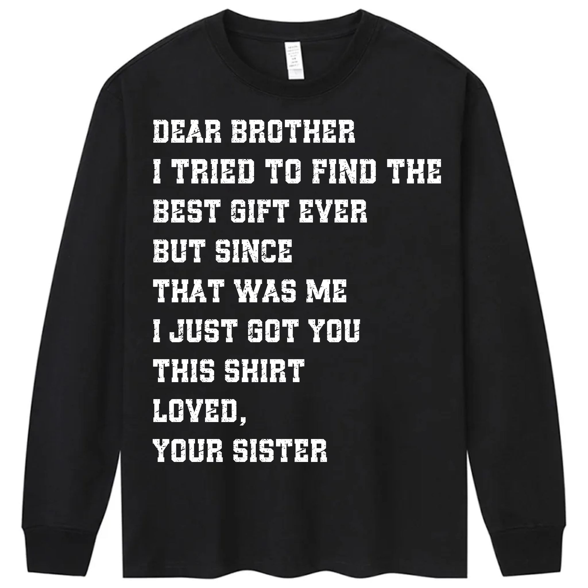 Default Design Example: DEAR BROTHER, I TRIED TO FIND THE BEST GIFT EVER BUT SINCE THAT WAS ME I JUST GOT YOU THIS SHIRT LOVE, YOUR SISTER