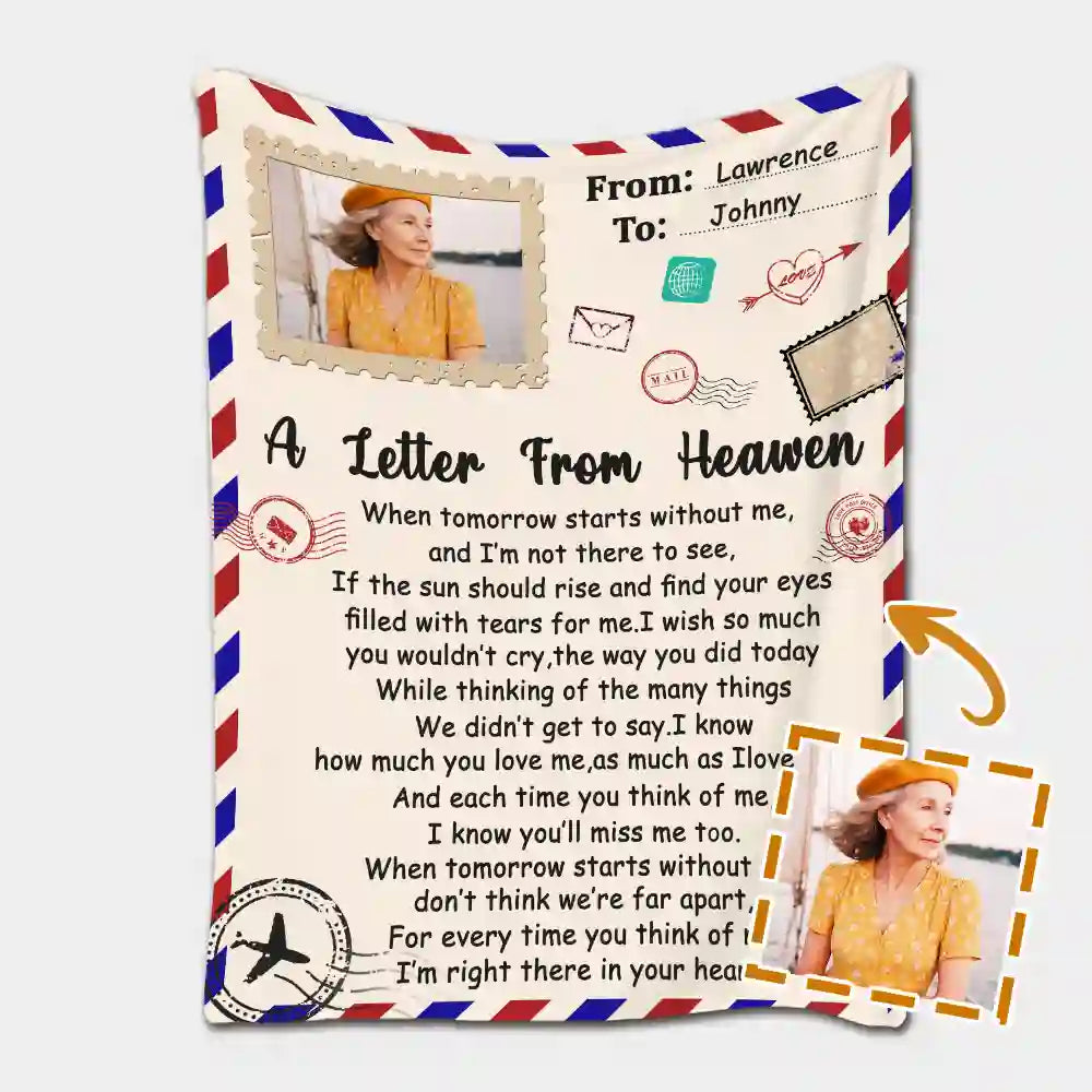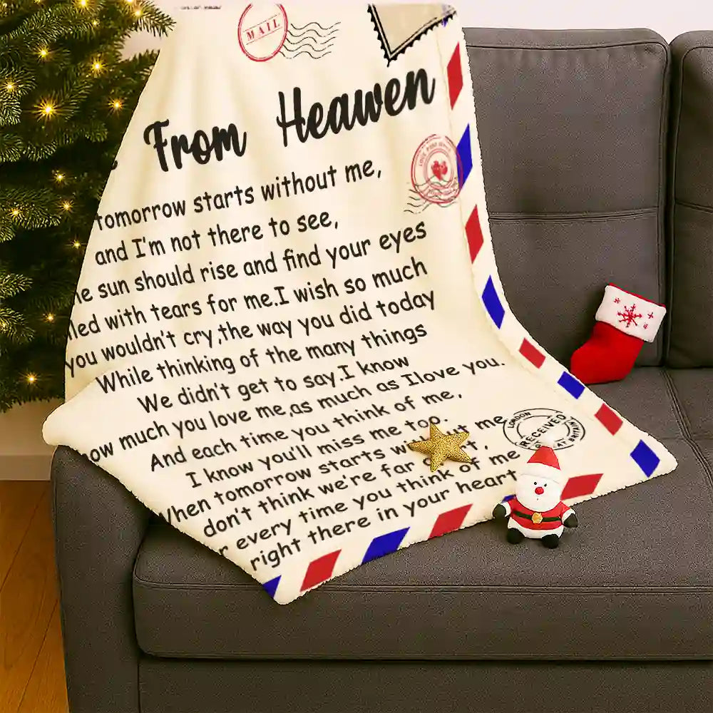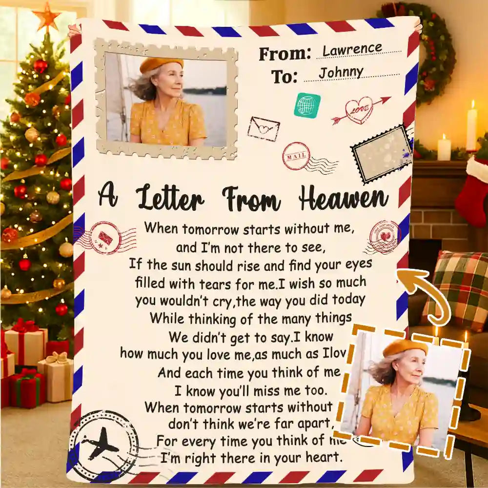 The "Forever With You" Memorial Blanket is more than just a blanket; it's a heartfelt reminder that love never truly leaves us. Emblazoned with your favorite photos and a comforting "Letter from Heaven," it brings you a sense of closeness to your loved one, bringing peace and warmth in every season.